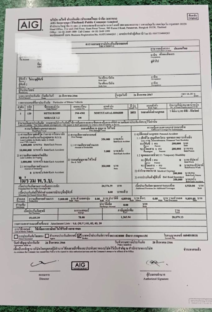 - Insurance policies are written in Thai.