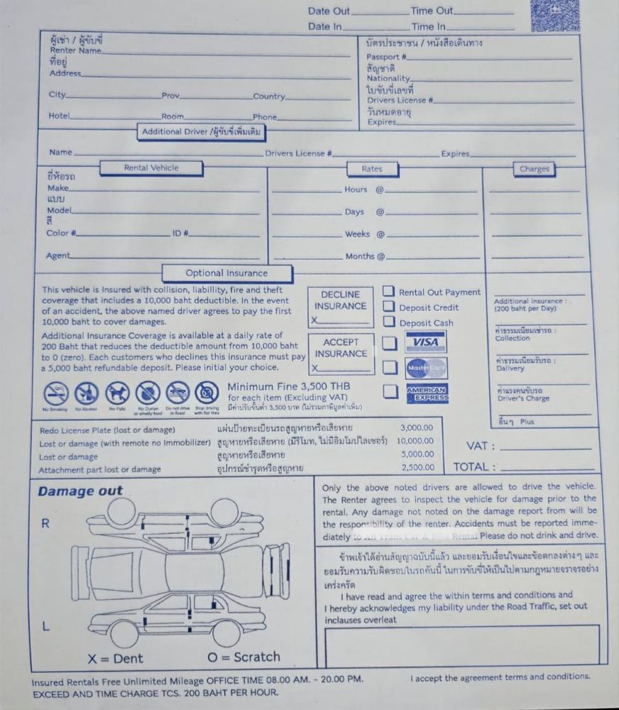 The main document when renting a car in Phuket is a rental agreement. It is worth noting that the renter must pay if the accident is his fault. Innocent people do not risk anything. You may find the article How to avoid mistakes when renting a car in Thailand useful.